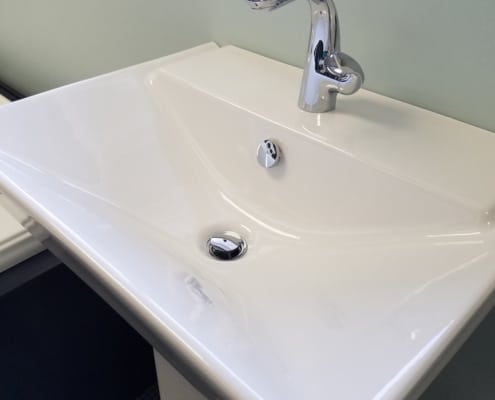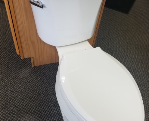 Want to add a toilet to your basement but you have no underground plumbing or don’t want to bust up the slab? Ask us about the Saniflo toilet that will pump up and connect into the sanitary lines overhead.
